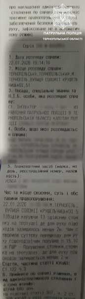 22 січня, ввечері на вулиці Соломії Крушельницької патрульні виявили автомобіль Honda, припаркований з заїздом на тротуар, що унеможливило безпечний прохід пішоходів.