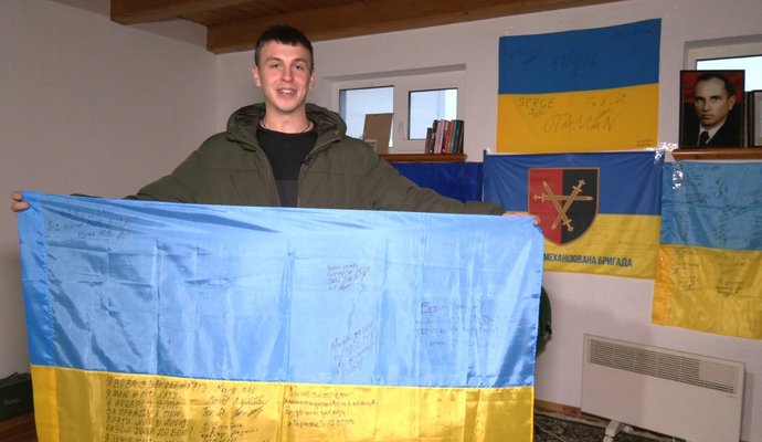 "Мені передали прапор від дяді Міші Онишка. Дуже приємно було, що саме бійці, військові з передової, передали прапор. Мене це захоплювало займатись цією справою, бо я розумів, що роблю щось важливе і я допомагаю цим".