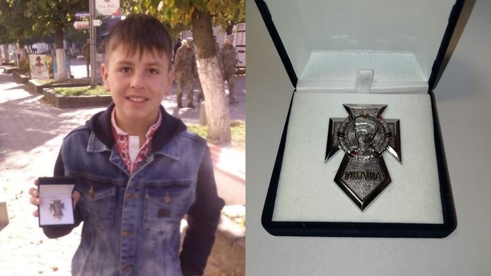 "Як волонтерив: десь коробку подати, десь комусь допомогти, якусь банку принести, бо ж малі, сильно щось робити не могли, але ми тримали бойовий дух, і тоді вже почалося волонтерство. І перша така серйозна нагорода — це орден Романа Шухевича. Мене нагородили ним у 12 років. Для мене це просто шок був".