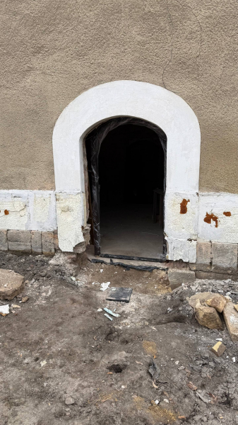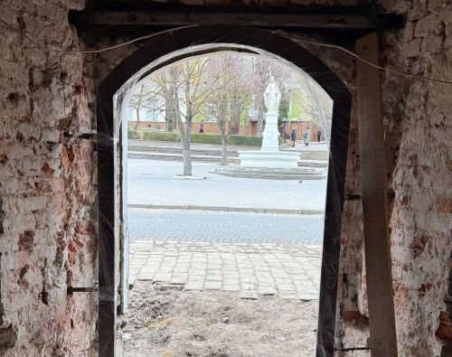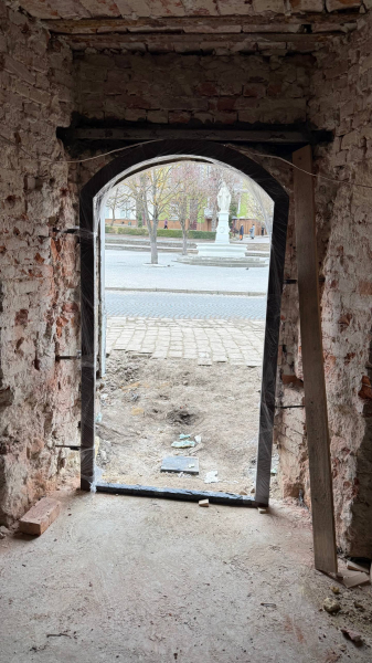 У Бережанах тривають роботи з оновлення простору біля старої ратуші — там уже встановили новий дверний проріз, який відтворює історичний стиль будівлі.
