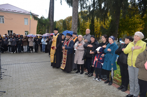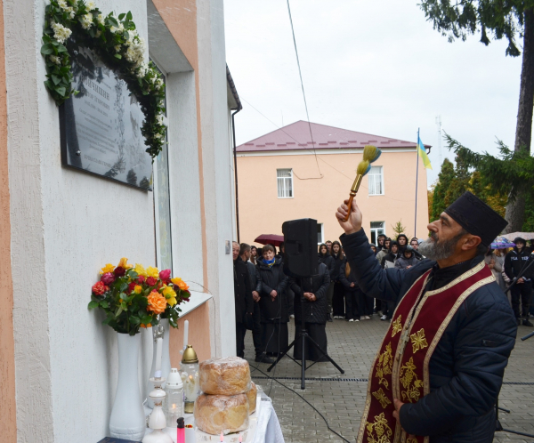 Під час церемонії присутні виконали державний гімн України, а священники Михайло Кравчук, Андрій Мельник і Любомир Фінковський провели поминальний молебень і освятили меморіальну дошку. Право її відкрити надали матері та сестрам загиблого.