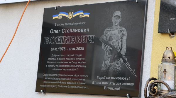 У Бучачі на фасаді місцевого ліцею відкрили та освятили меморіальні дошки на честь полеглих захисників України Олега Конкевича та Івана Олійника.
