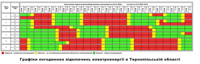 Прогнозований графік відключень світла 20 листопада. “Тернопільобленерго”