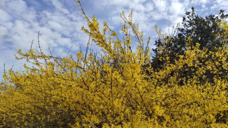 У центрі Тернополя цвіте форзиція. Суспільне Тернопіль
