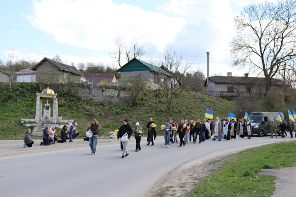 На початку села Великий Глибочок траурний кортеж зустріла похоронна процесія. Односельці, жителі громади, представники місцевого самоврядування, провадили на щиті воїна Геннадія до рідної домівки.