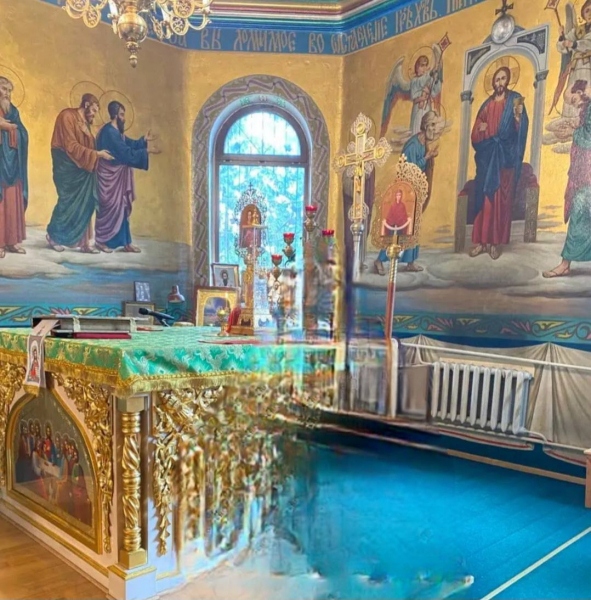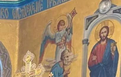 У православній церкві московського патріархату села Сапанів, що на Кременеччині, на стінах храму намалювали янгола з крилами кольору прапора росії.