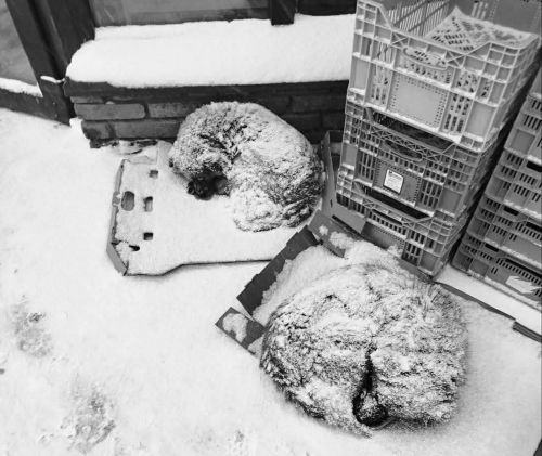 Небайдужі люди намагаються допомогти, встановлюючи картонні або прості будки для тварин, але вони часто руйнуються за ніч.