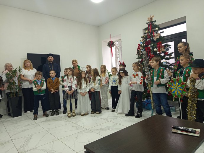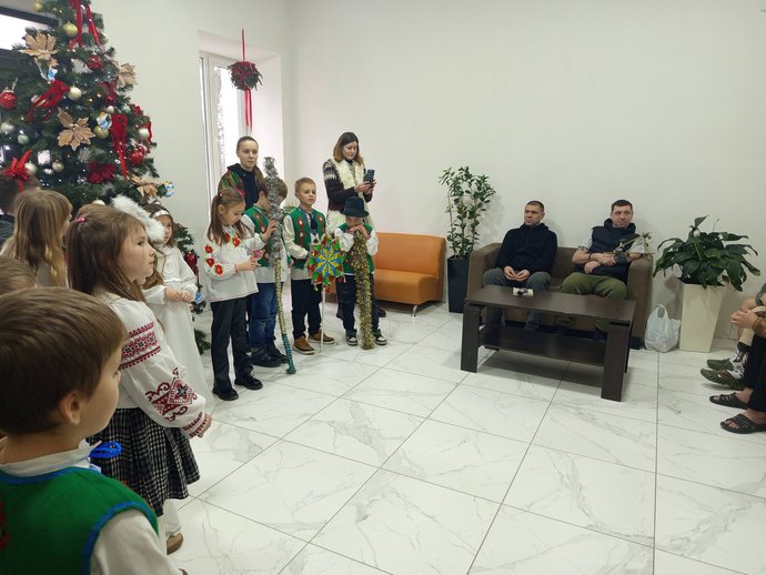 Школярі завітали до військових з колядою і вертепом. Микулинецька обласна фізіотерапевтична лікарня реабілітації