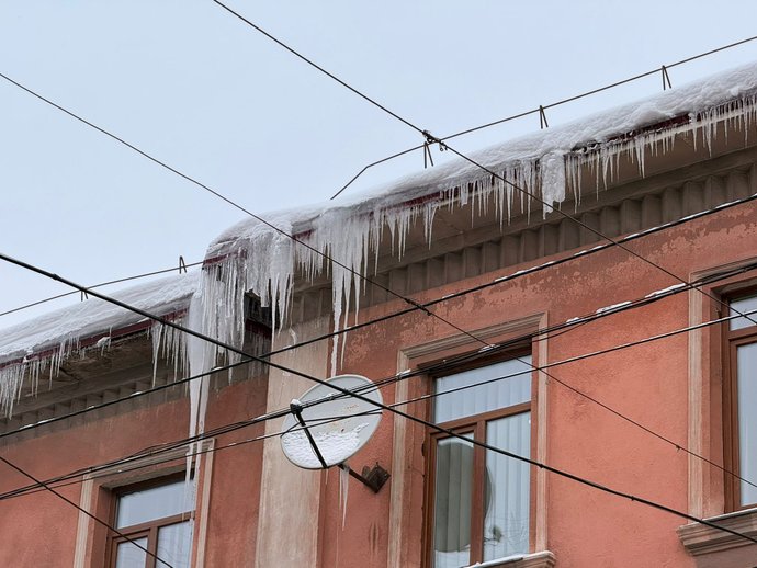 Бурульки на будинку по вулиці Руській в Тернополі. Суспільне Тернопіль