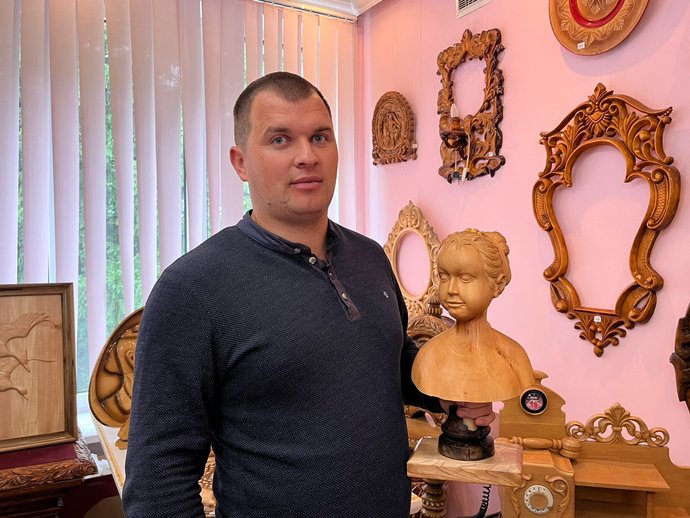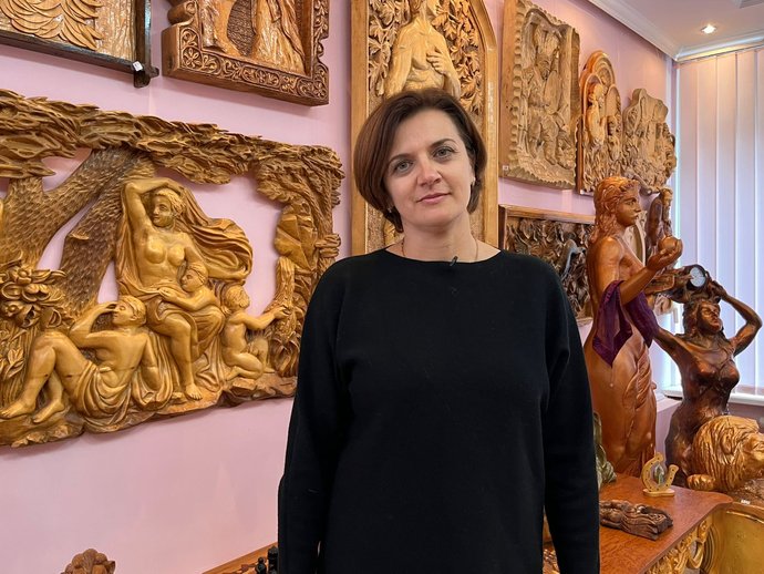 "Саме ось тут в майстерні виготовляють всі вироби, які потрапляють у наш музей. Майстерня оснащена всім необхідним обладнанням для цього, маємо маленькі деревообробні верстати і різці по дереву, якими ми це робимо".