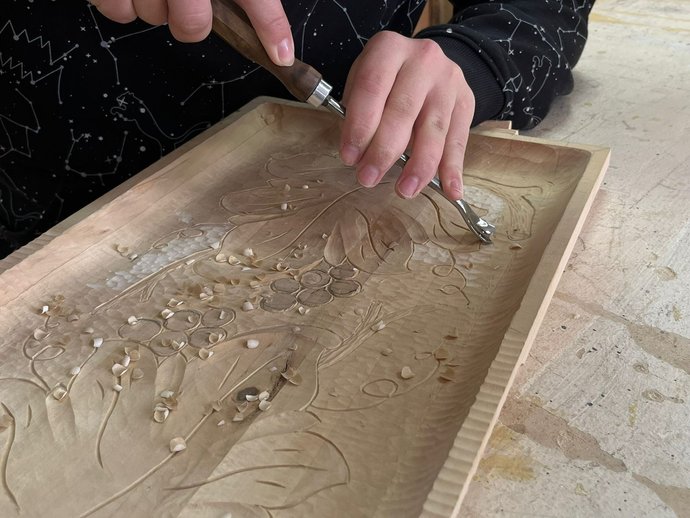 "Набір на професію "Виробник художніх виробів з дерева" почали з 1992 року. Кожні три-чотири роки при випуску дипломні роботи накопичувались. В музеї зберігали тільки ті, які вважали найкращими з випуску. Частину дарували, частину учні могли забрати собі, а решту зберігали в музеї", — каже викладачка.