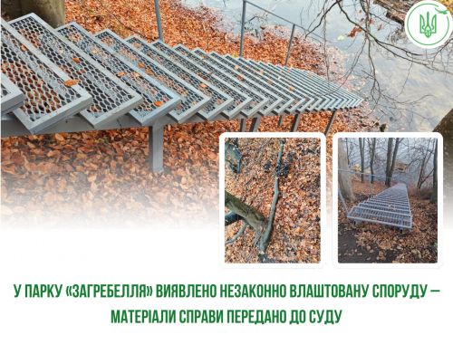 “Реагуючи на звернення громадян, фахівець Державної екологічної інспекції у Тернопільській області спільно з громадським інспектором з охорони довкілля провели обстеження території регіонального ландшафтного парку «Загребелля» в межах прибережно-захисної смуги Тернопільського ставу. Під час огляду місця події встановлено факт самовільного влаштування металевої споруди — сходового маршу із 42 металевих сходинок, прокладених від автодороги до урізу води Тернопільського ставу. Крім того, унаслідок проведення цих робіт було здійснено самовільну рубку дерева породи граб. За виявленими фактами на відповідальну посадову особу підприємства складено протокол про адміністративне правопорушення за ст. 91 КУпАП. Матеріали справи направлено до Тернопільського міськрайонного суду”, –повідомляють екологи.