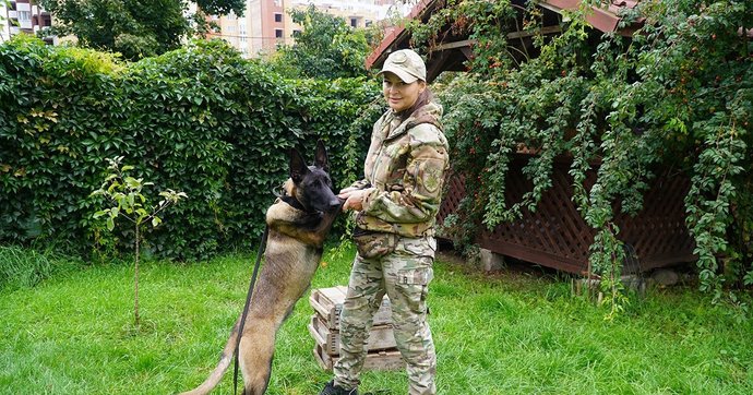 Наталія Мазур із службовим собакою. Головне управління Національної поліції в Тернопільській області
