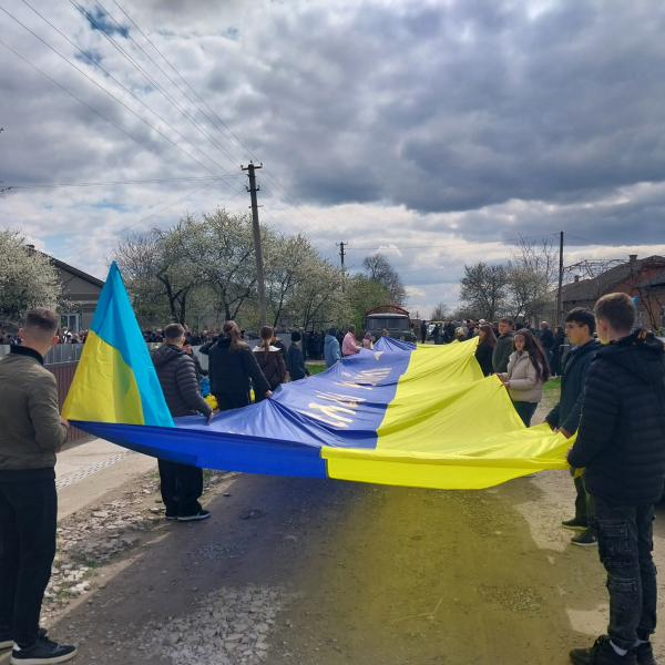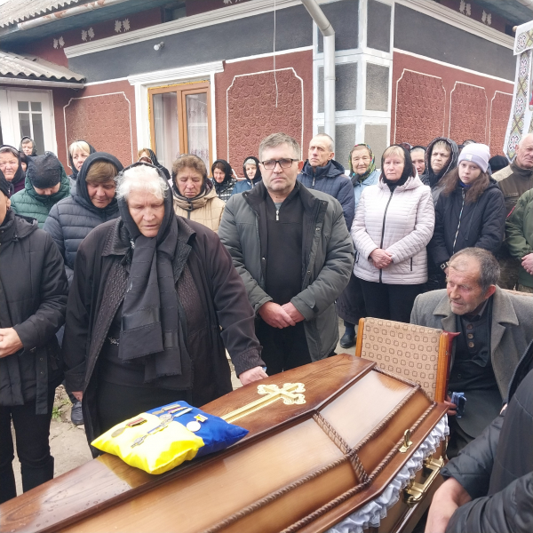 Під час прощання люди схилили голови в скорботі та висловили вдячність воїну за його подвиг і жертовність.