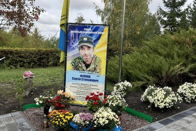 Як йдеться у дописі, на цьому місці також встановили банер на честь Сергія Фіялки, місцевого жителя, який загинув 20 червня 2022 року, захищаючи Україну на Луганщині. Його тіло досі не повернули: