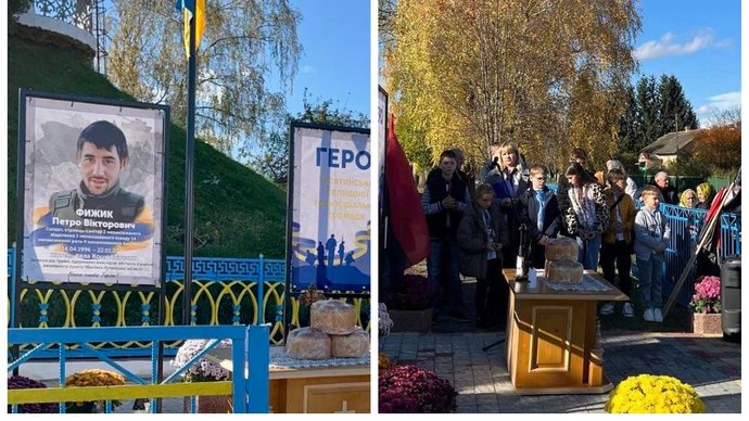 На металевій конструкції Алеї розмістили світлину Петра Фижика. Він загинув від ран, отриманих внаслідок обстрілу в районі населеного пункту Макіївка Луганської області. Бійцю було 29 років.