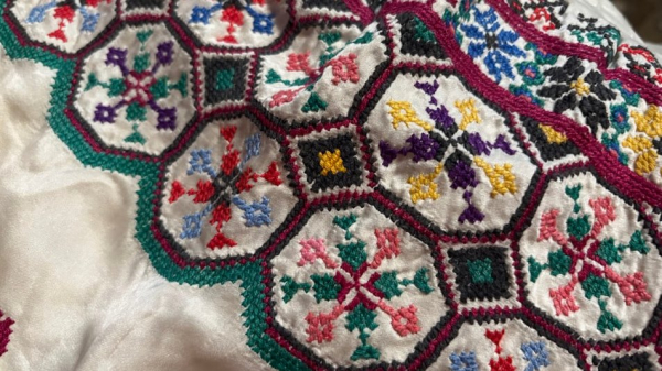 Родина не жила в злиднях, мала власне господарство, тож прабабуся змогла придбати атласну тканину та якісні нитки. Втім, повністю завершити вишивку їй не вдалося – частину роботи доробляла вже бабуся Валентина.