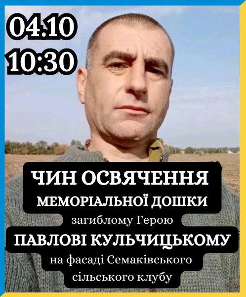 Освячення меморіальної дошки Павлові Кульчицькому відбудеться у суботу, 4 жовтня, о 10:30 на фасаді Семаківського сільського клубу.