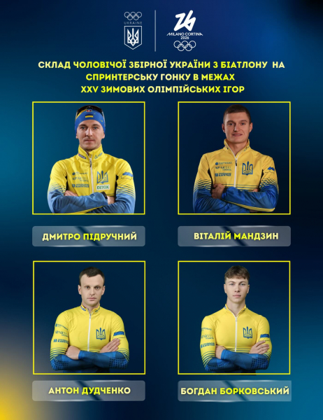 На старт вийдуть біатлоністи з Тернопільщини Дмитро Підручний та Віталій Мандзин. Також Україну представлятимуть Антон Дудченко та Богдан Борковський.