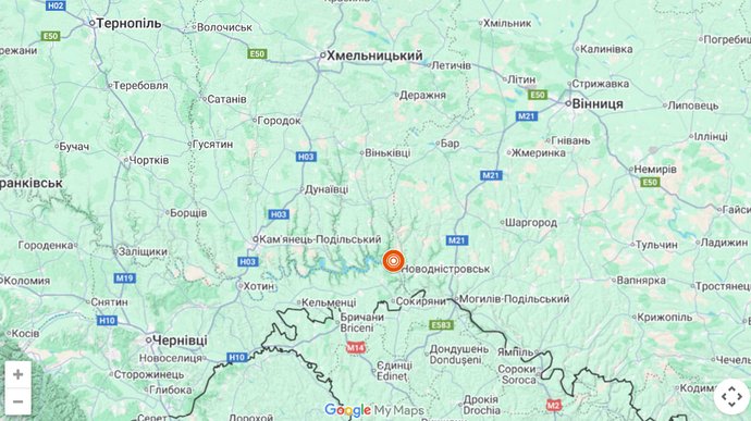 Карта з позначенням землетрусу в Чернівецькій області. Центр спеціального контролю