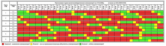 Графік погодинних відключень електроенергії на Тернопільщині 17 січня 2026 року. Скрин з сайту “Тернопільобленерго”