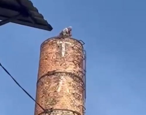 На місці видно високу цегляну трубу — частину старої котельні, яку поступово розбирають. Роботи проводять поруч із територією колишньої історичної споруди.