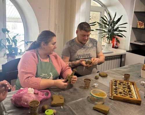 Майстер-клас провели викладачки «Школи народних ремесел» Ольга та Тетяна. Вони ознайомили військовослужбовців із базовими техніками ліпки та допомагали на всіх етапах роботи.