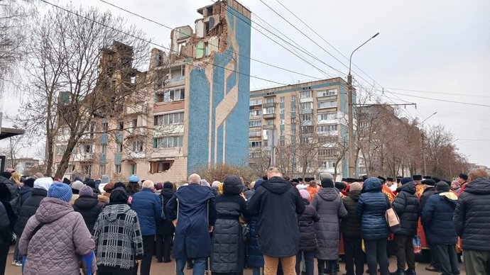 У храмах міста зранку правилися заупокійні літургії. Біля зруйнованих будинків на вулиці Стуса та на 15 квітня люди теж молилися за загиблими.