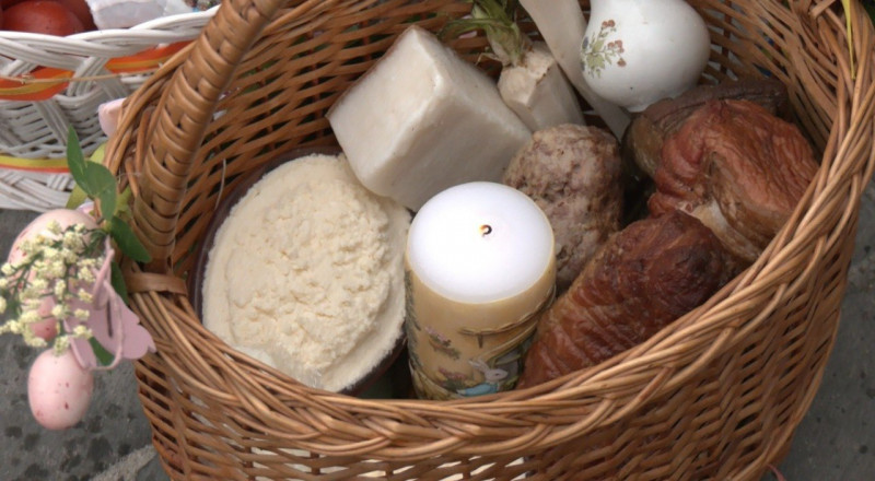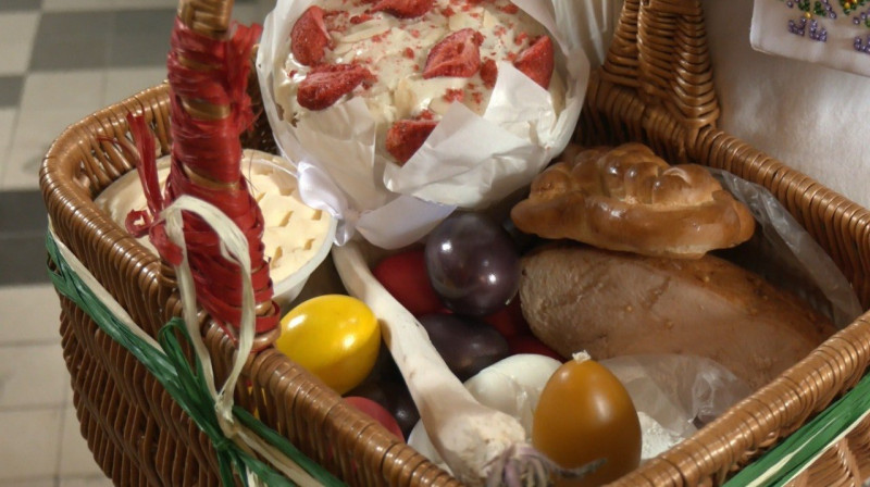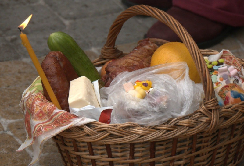 Щоб освятити Великодній кошик до Кафедрального собору Різдва Христового Православної церкви України прийшла Ольга Галушко. Жінка родом з Донеччини. Розповідає, до Тернополя переїхала через війну. Показала, що у кошику: