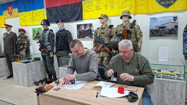 Під час підписання меморандуму Дмитро Харчук передав музею прапор 80-ї окремої десантно-штурмової Галицької бригади, у складі якої він проходив службу.