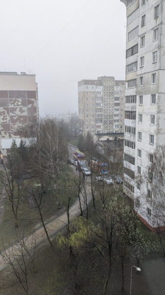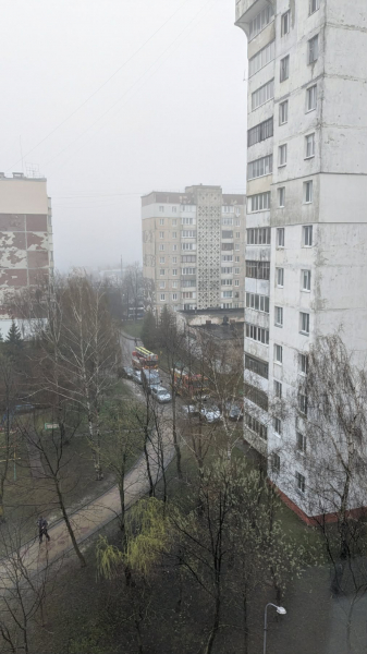 Станом на 16:00 на місці події працюють щонайменше чотири пожежні автомобілі. Водночас рятувальники мають труднощі з під’їздом до будинку через щільно припарковані автомобілі у дворі.