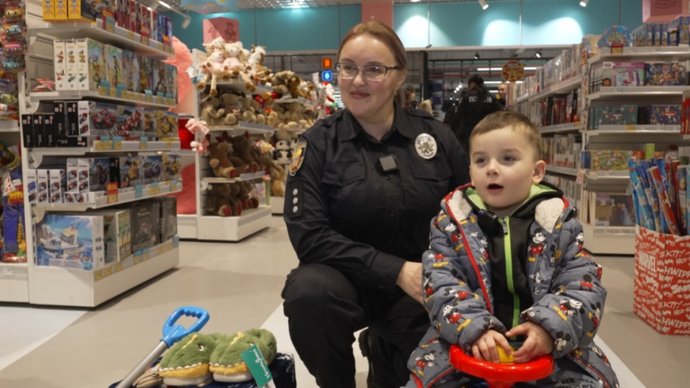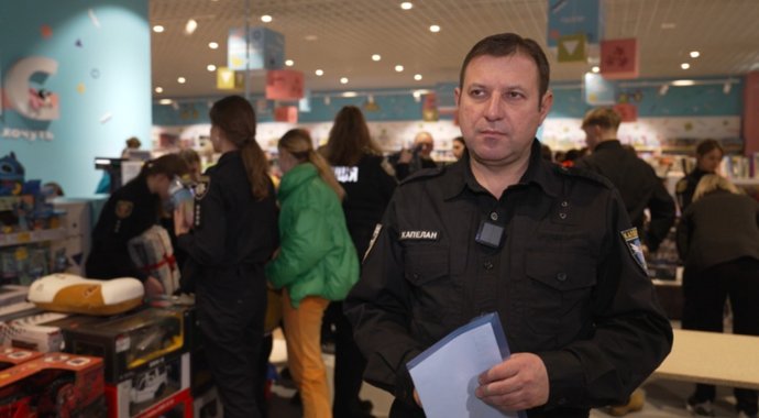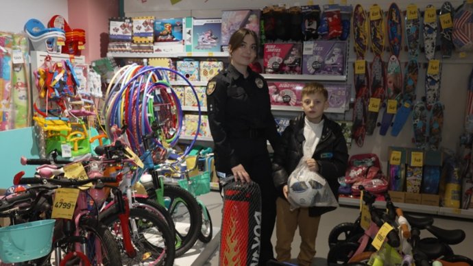 Андрій разом з поліцейською обирає подарунки. Суспільне Тернопіль