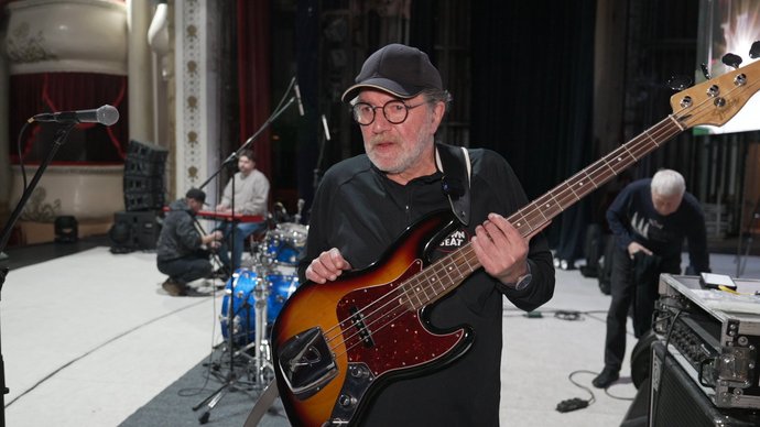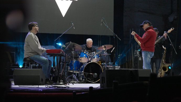 На сцені відбулася репетиція українського гурту "Jazz in Kyiv Band". Учасник колективу Олексій Коган розповів, яким буде їх виступ: