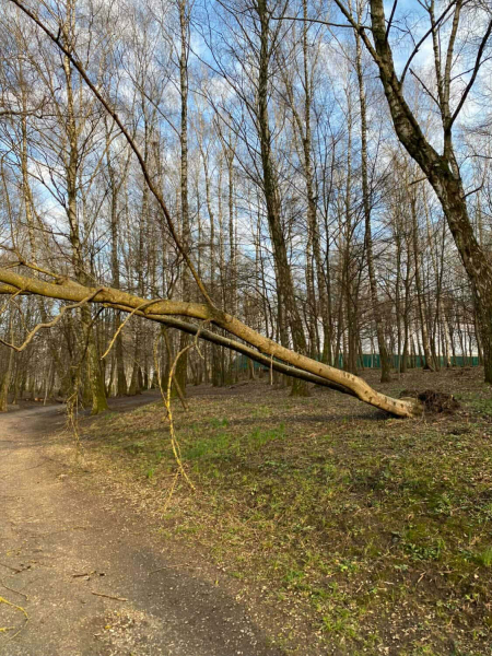 Про інцидент повідомили відвідувачі парку 2 квітня. За їхніми словами, дерево впало впоперек однієї з пішохідних стежок — прохід цією ділянкою заблокований. Стовбур зламався біля основи, крона розлетілась на кілька метрів.
