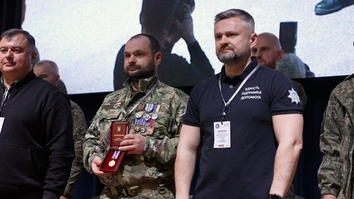 На форум приїхав радник Міністра внутрішніх справ України Дмитро Фінашин. Він був снайпером у Нацгвардії з 2015 року. Під час повномасштабної війни, потрапивши в засідку росіян, Дмитро отримав важкі поранення, дві доби діставався українських позицій. У жовтні 2022 року ветерану присвоїли звання Героя України, а в 2025 році він став радником міністра МВС й працює над покращенням реабілітації, соціальної підтримки та працевлаштування учасників бойових дій у системі МВС.