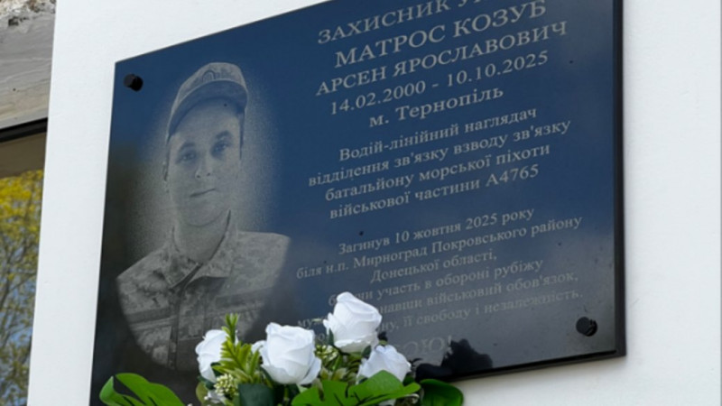 У Тернополі на фасаді школи №10 відкрили меморіальну таблицю на честь загиблого військовослужбовця Арсена Козуба.