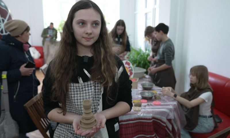 "Мене запросили на цей майстерклас. Він дуже цікавий. Тут роблять різні вироби з глини. Мені тут дуже подобається. Це для мене є щось нове, адже такого я ніколи не робила", — поділилася враженнями дівчина.