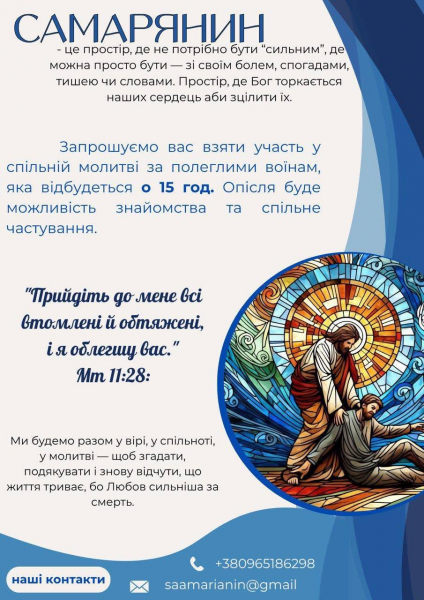 Центр «Самарянин» покликаний стати простором зустрічі, зцілення та підтримки для родин загиблих військових. Його діяльність передбачає духовний супровід, душпастирську підтримку, зустрічі у спільноті, а також місію збереження пам’яті про героїв.