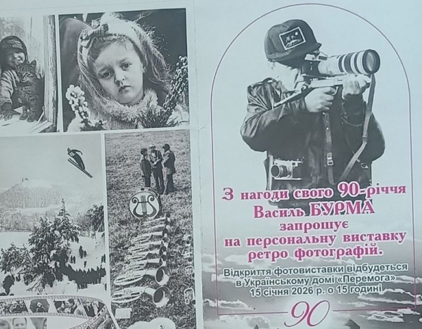 «У фоє Українського Дому відбудеться персональна виставка ретро-фотографій видатного українського фотокореспондента, Заслуженого журналіста України Василя Бурми. Захід приурочений 90-річчю митця», – йдеться у повідомленні.