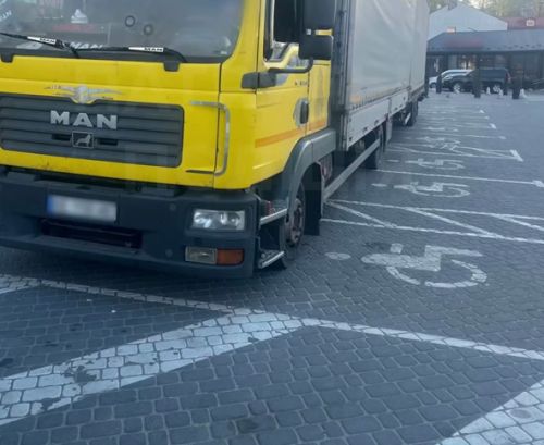 У Тернополі, водій вантажівки “МАН” з причепом зайняв відразу декілька паркомісць, які призначені для осіб з інвалідністю.