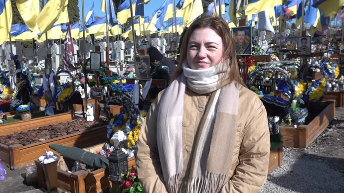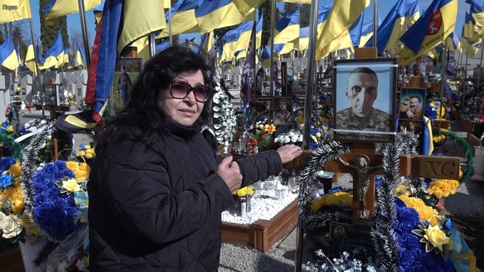 Волонтерка Христина Довгалюк каже, на кладовищі буває майже щодня, бо тут похований її син Роман, який брав участь у російсько-українській війні. Жінка також допомагає доглядати за могилами інших бійців.