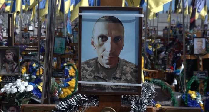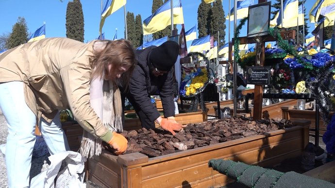 Зараз прибираємо могилу Барановського Володимира. Це житель Тернополя, як нам розповідали на першій зустрічі. Він був призваний до лав Збройних сил України і загинув на запорізькому напрямку", — говорить Оксана Уніят.