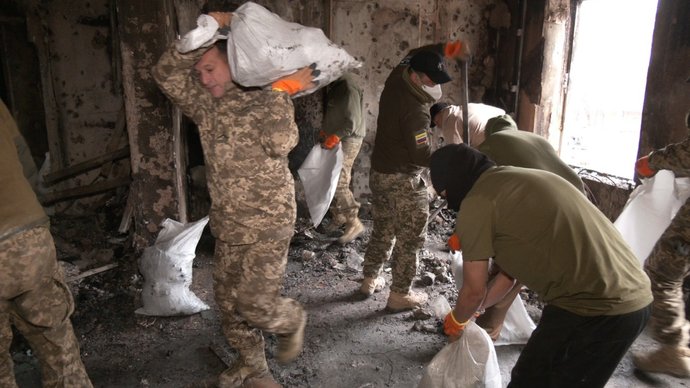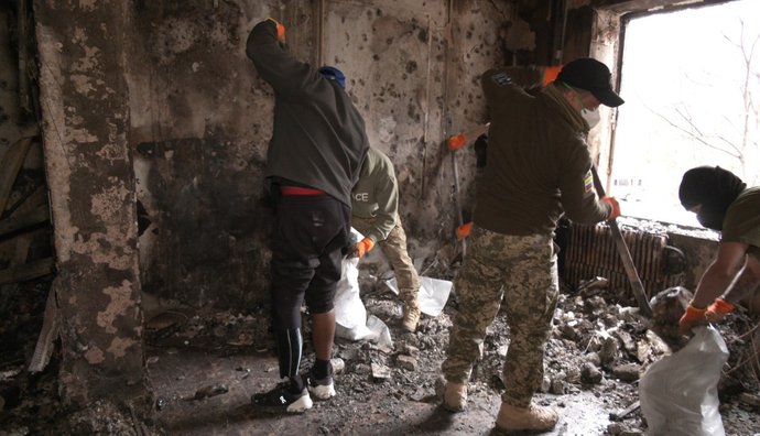 П’ятнадцять волонтерів з країн Латинської Америки допомагають мешканцям будинків, які зазнали руйнувань під час російських обстрілів 19 листопада в Тернополі. Вони 27 листопада вони прибирали обгорілі рештки з квартир, збирали та вантажили сміття.