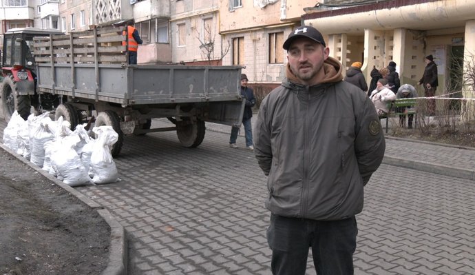 "У нас десь близько 15 людей і ми взагалі планували на одну квартиру, але приїхали сюди і вони так завзято почали працювати, підійшли до нас люди з ЖКГ і просять ще три чи п’ять квартир, а вони кажуть, давайте ще, ми готові працювати. Дуже вдячний тернопільському бізнесу за те, що надали інструменти, мішки".