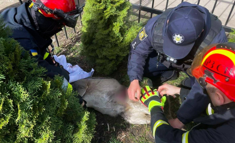 До Служби порятунку об 11 годині 38 хвилин надійшло повідомлення про тварину, яка застрягла в огорожі.