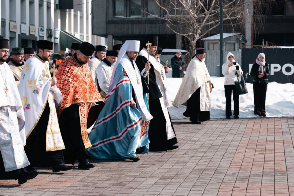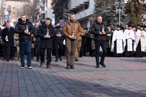 Біля пам’ятника Героям Небесної Сотні на Майдані Волі зібралися родини загиблих, військовослужбовці, духовенство, представники влади та мешканці міста. Саме тут відбулася спільна панахида за загиблими під час Революції Гідності.