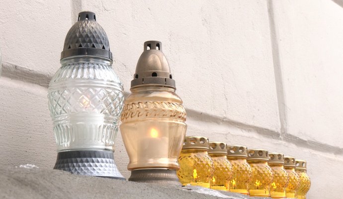 Лампадки під пам’ятною таблицею. Суспільне Тернопіль