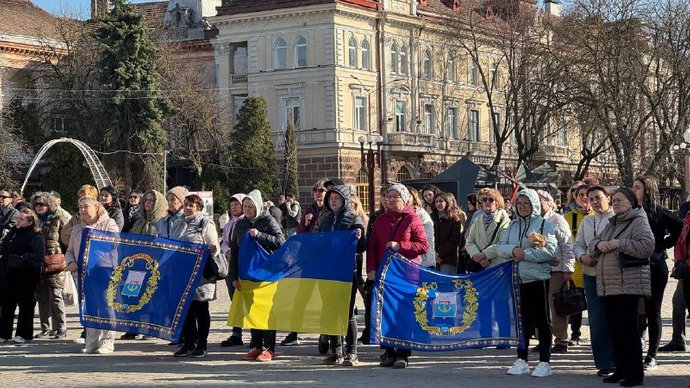 У Тернополі 16 березня понад півтори сотні людей вшанували пам’ять загиблих внаслідок авіаудару російськими військами по драмтеатру Маріуполя. Акцію провели на Театральному майдані.