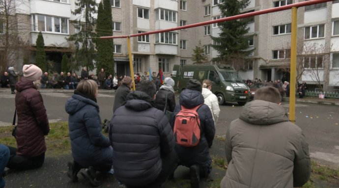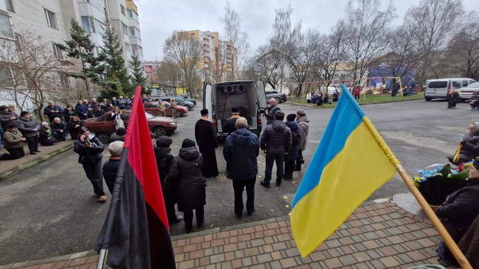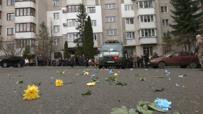 Тіло Андрія Буди привезли на вулицю Громницького, де жив боєць. Суспільне Тернопіль