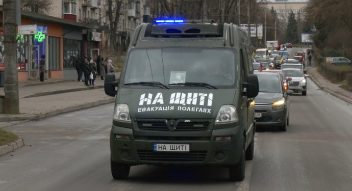 Колона із тілом військового Андрія Буди їде містом. Суспільне Тернопіль